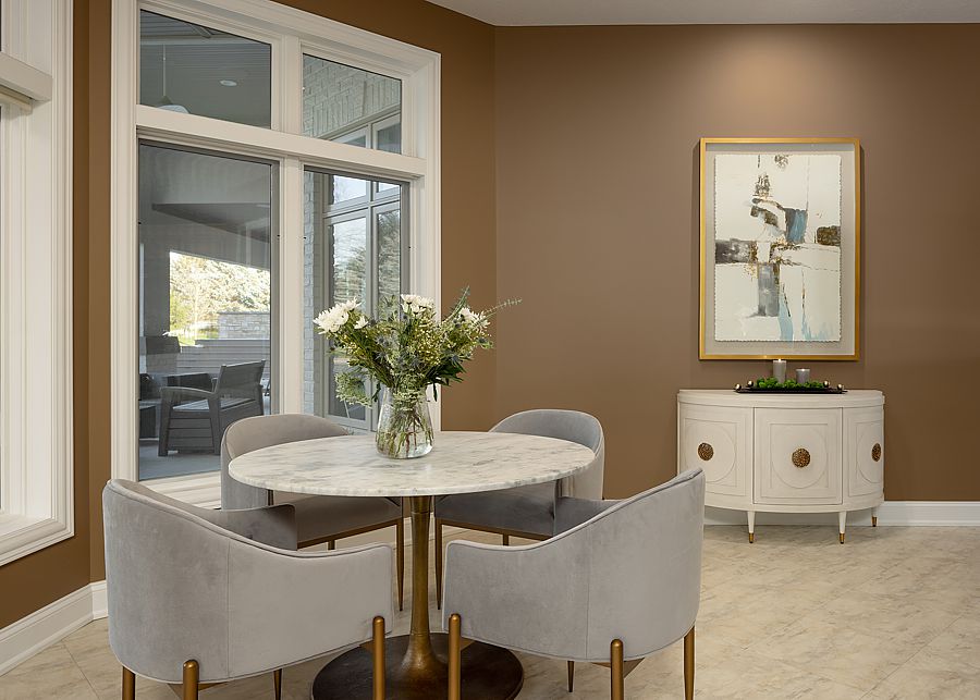 Mocha Mousse isn’t reserved for walls and furniture. You can utilize it in your kitchen for a delectable look that will inspire you to make mouthwatering baked goods all year round. Use brown and other similar tones for kitchen cabinets paired with gold hardware or natural wood tones. Also, this shade can make your bathroom feel like a five-star spa — the perfect place to start your day or get ready for bed at night.